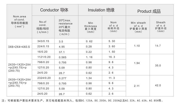 產品特性: 具有高柔軟、耐高溫、集動力提供、信號控制、信號傳輸在一根電纜內。
